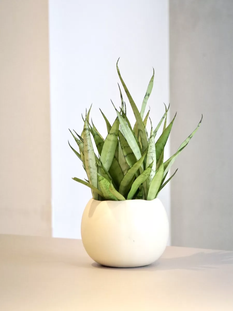 風水ではサンスベリアの上に伸びるシャープな葉姿が「邪気を払い、空間を守ってくれる植物」とされ、