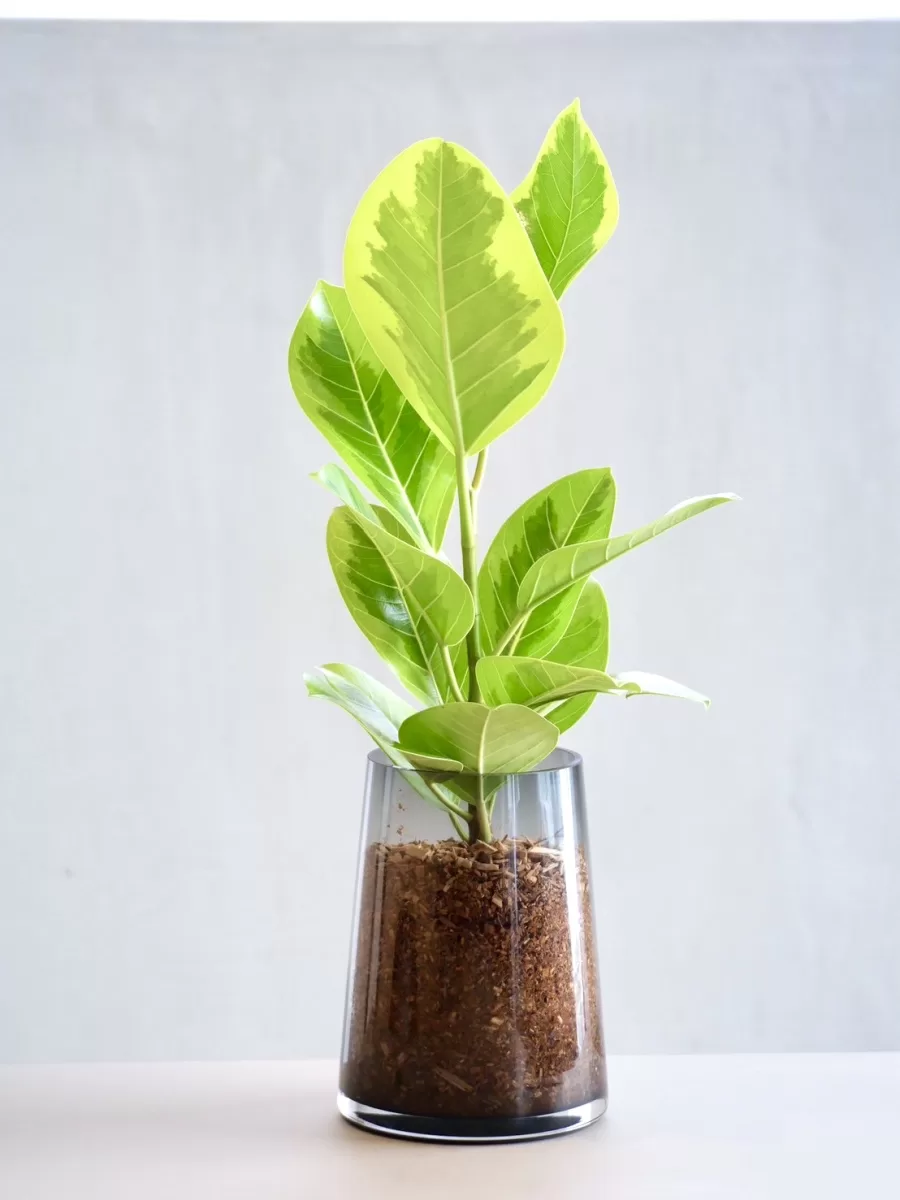 まるで一枚の絵画のように、柔らかな斑(ふ)を描き出すフィカス・アルテシマ。